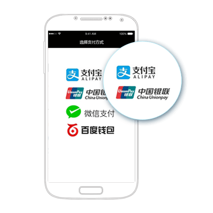 湖北省开岳设计馆,为iOS/Android原生/H5 App提供支付解决方案:支持微信支付、支付宝支付、银联手机支付、百度钱包等。